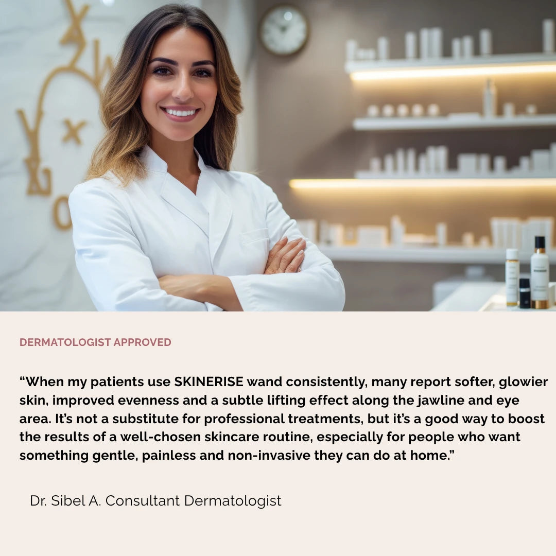 Behind SKINERISE is a team of skincare experts, engineers and dermatologist-informed advisors who shaped the protocol (about 3 minutes per day, 3–5× a week) so it’s powerful and realistic to stick to.